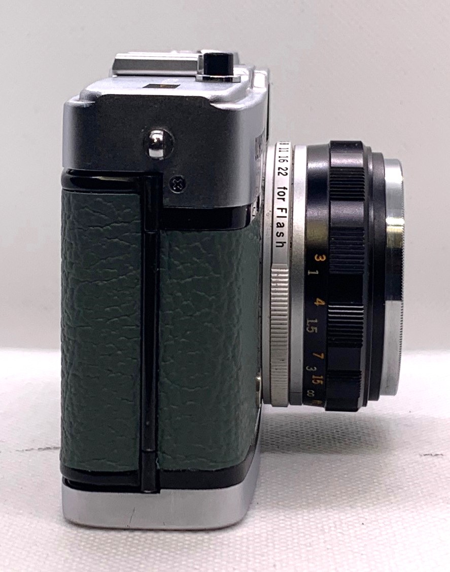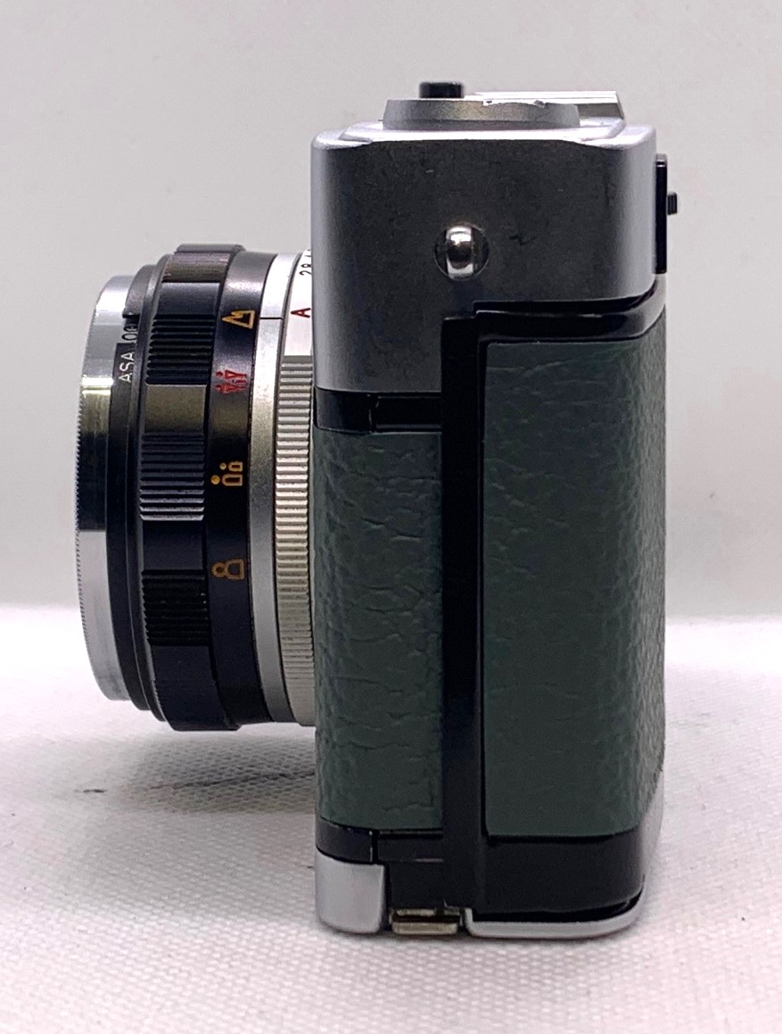 The Olympus Trip 35 was built to last with an all metal body and the exquisite Zuiko lens. There were over 7.5 Million of these cameras sold between 1967 and 1984. This camera is looking superb after a full service and new Retro Green leather.