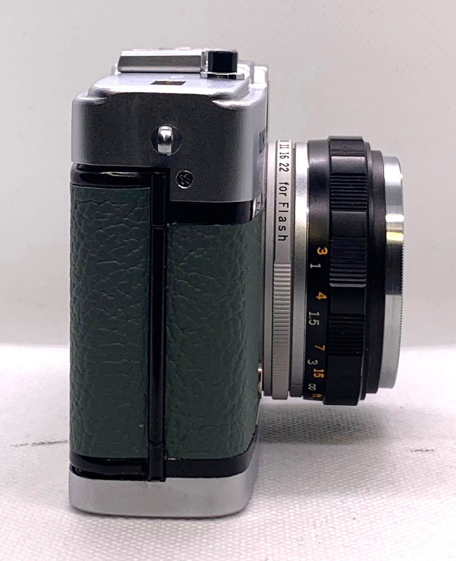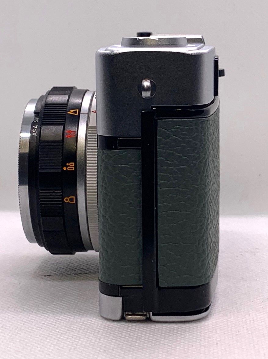 The Olympus Trip 35 was built to last with an all metal body and the exquisite Zuiko lens. There were over 7.5 Million of these cameras sold between 1967 and 1984. This camera is looking superb after a full service and new Retro Green leather.